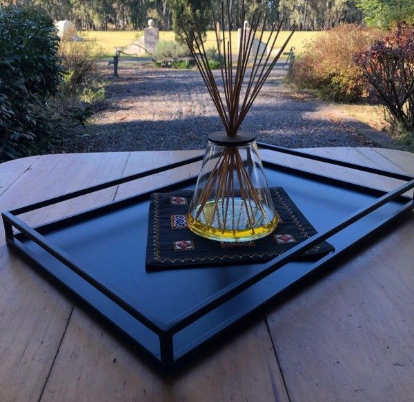 Bandeja de chapa resistente y con estilo industrial, ideal para servir, organizar o decorar cualquier espacio. Su diseño simple y versátil aporta un toque moderno y funcional a tu hogar.