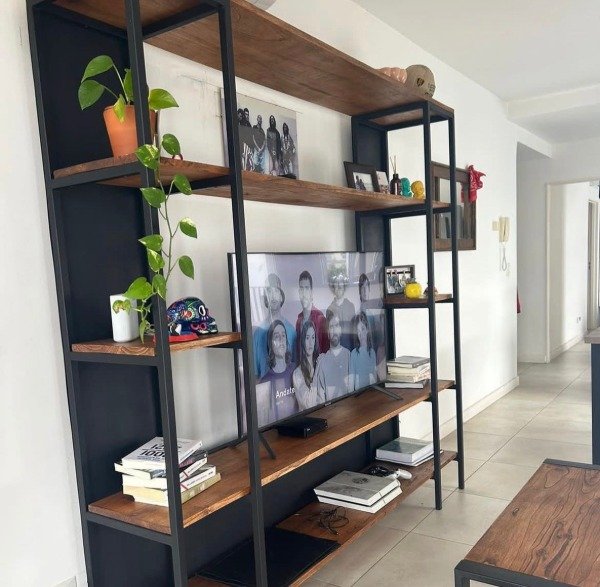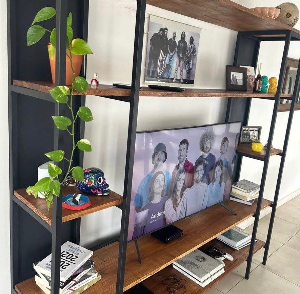 Estantería de estilo industrial, robusta y moderna, ideal para organizar y exhibir tus objetos con personalidad. Su diseño combina metal y madera, aportando carácter, funcionalidad y un toque urbano a cualquier ambiente.