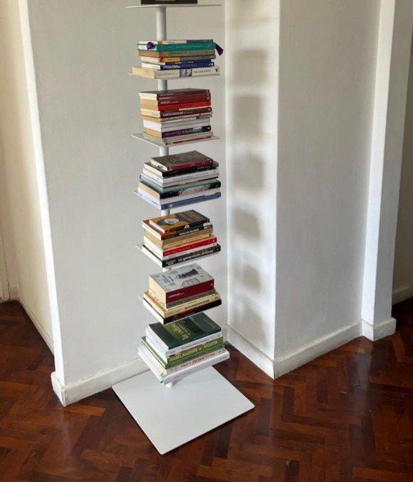 Torre porta libros moderna y funcional, ideal para organizar tus lecturas y objetos decorativos. Su diseño vertical aprovecha el espacio al máximo, aportando estilo y practicidad a cualquier ambiente del hogar.