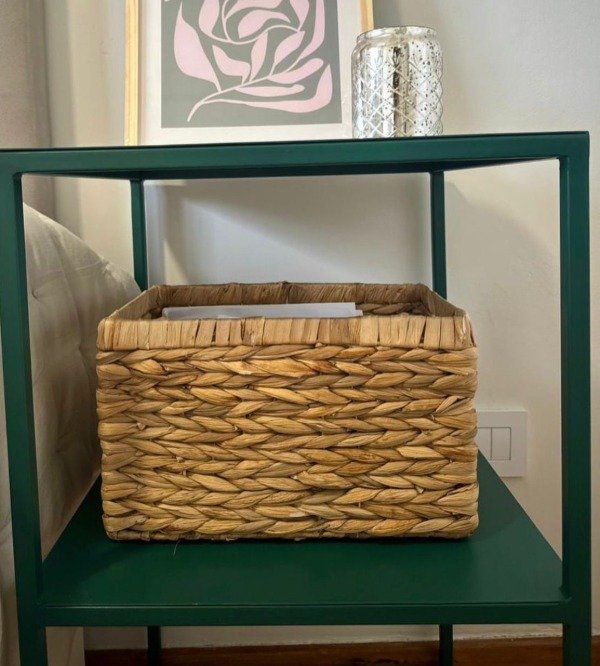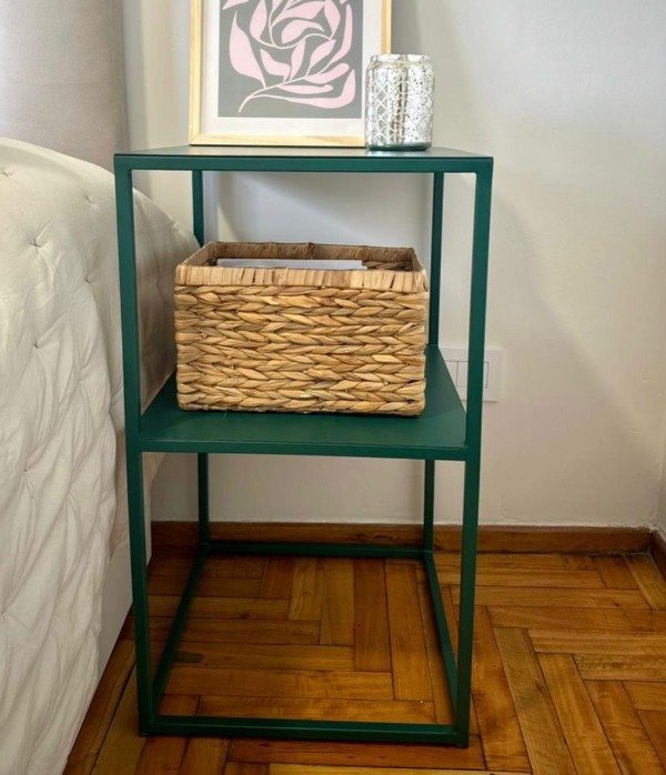Mesa de luz con diseño moderno y funcional, perfecta para completar tu dormitorio con estilo. Ideal para mantener tus objetos esenciales al alcance, aportando calidez y un toque decorativo al espacio.